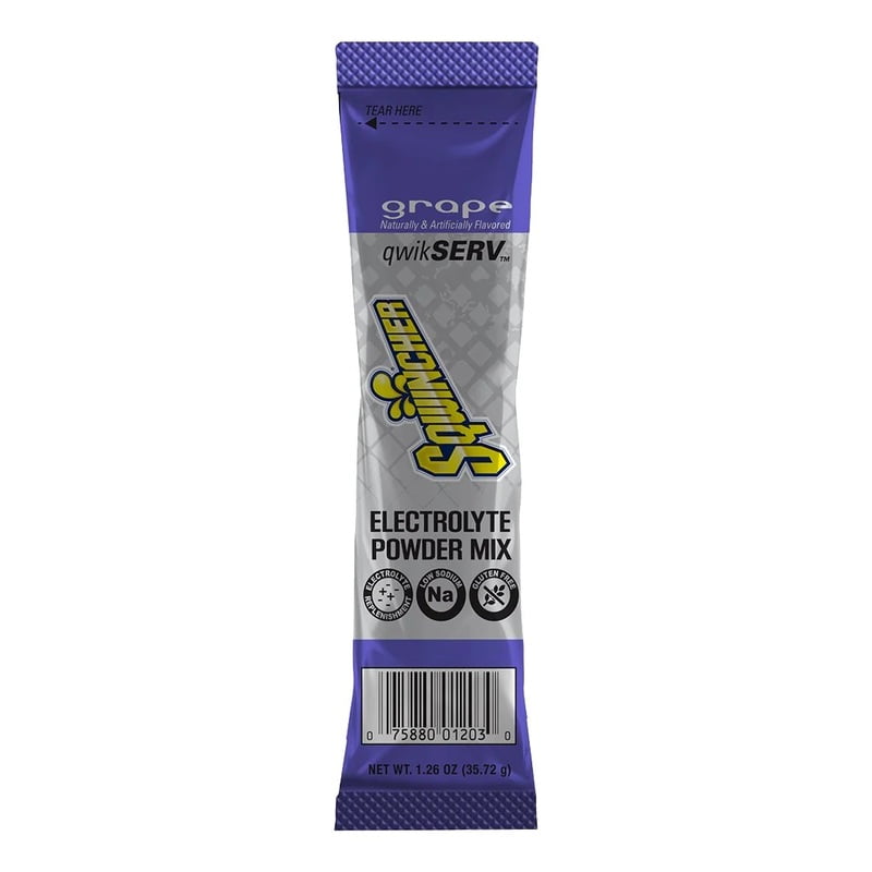 Sqwincher® Qwik Stik® Zero Single Serve, 0.11 oz Packs, 20 oz Yield, Single serve packs contain all the electrolytes the body needs—and without the sugar. Grape 50 PK