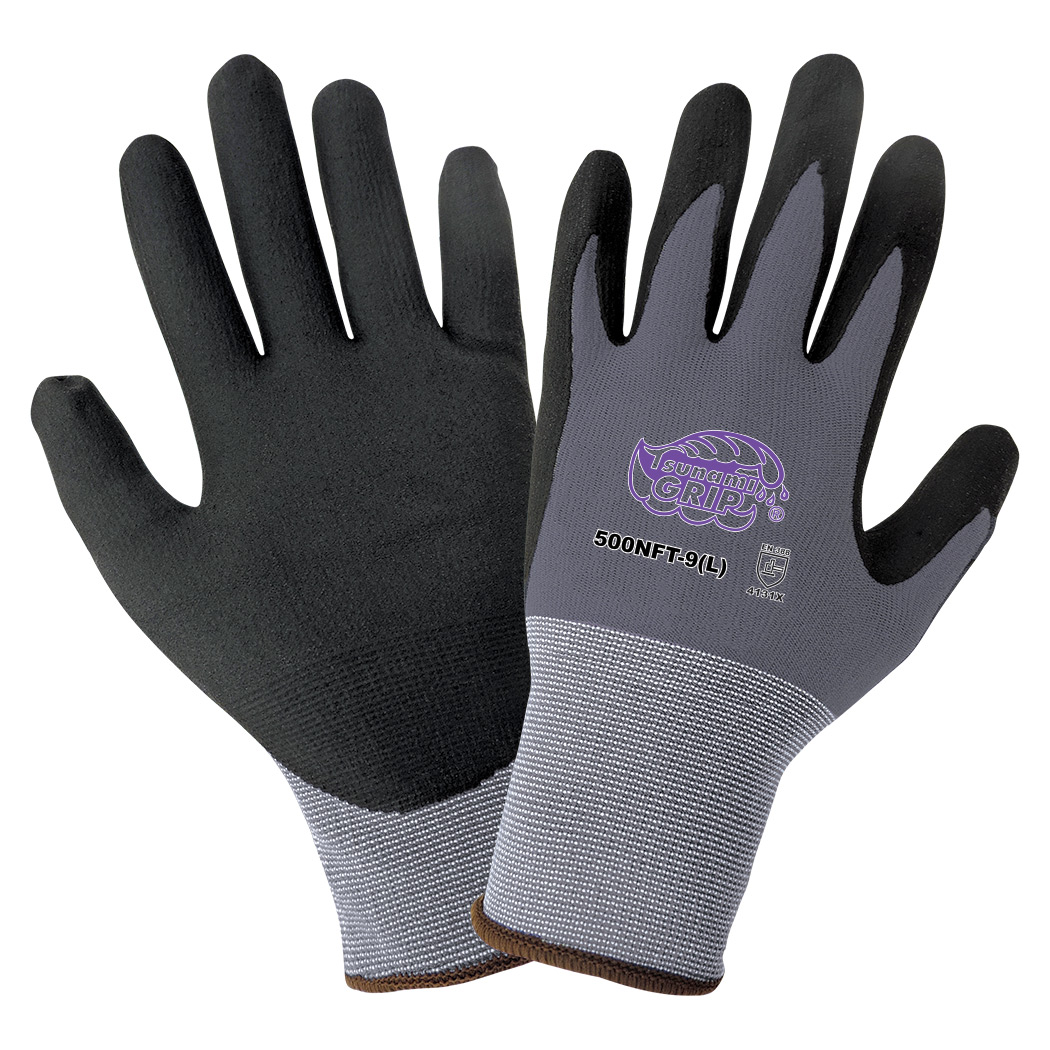 This lightweight seamless glove is a notable general-purpose option that features a 15-gauge nylon and spandex shell. The shell is enhanced by a New Foam Technology nitrile dipped palm. Each pair is individually hang-tagged for retail sale. 15-gauge nylon/spandex shell offers bare hand sensitivity Nitrile-coated palm with New Foam Technology finish allows hands to breathe while providing great grip in wet, oily, or dry conditions Overcast color on hem for easy size identification Knit wrist cuff offers users a secure, comfortable fit and prevents gloves from slipping off during use ANSI/ISEA 105 Cut Level A1 ASTM F2992-15 Results = 296 grams ANSI/ISEA 105 Abrasion Level 6 ANSI/ISEA 105 Puncture Level 2 ANSI Puncture Results: 49 Newtons EN 388 Levels: 4131X *Priced & Sold per Dozen