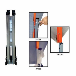 TwinFlex™ compact sign stands feature steel and aluminum construction for long-lasting, dependable service. Dual heavy duty steel coil springs provide stability in gusty wind conditions. TF12 series compact stands are available in several models that are designed to display roll-up signs at a mounting height of 12" off the ground (measured from the ground to the bottom of the sign). - MUTCD and NCHRP-350 compliant. - TwinFlex™ compact stand series offers two methods of roll-up sign attachment: the universal ScrewLock or Channel Style. See the sign holder page for more information. - Foot operated leg releases quickly lock legs in one of three positions to allow for storage or deployment on uneven terrain. - Legs feature .100" wall aircraft quality aluminum tubing. - Legs are 30" and telescopes to 51".