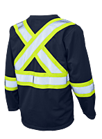 Long sleeve polyester micro mesh shirt with wicking treatment. Shell: 100% Polyester 125 GSM Micro-Mesh with wicking treatment Features: 2″ Reflective material with 4″ contrast backing Crew Neck Comfortable fit and breathable