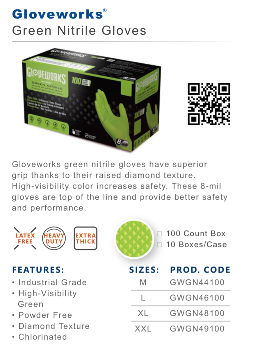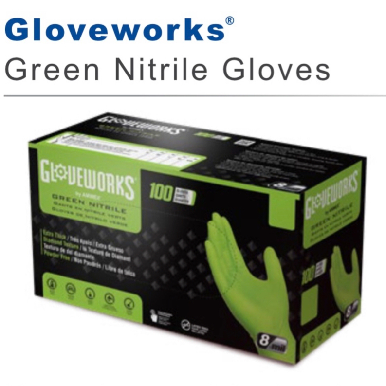 Gloveworks HD Green 8mil Nitrile Gloves (100) Gloves per Box, (10) Boxes per Case *Priced & Sold per Case Size: X-Large