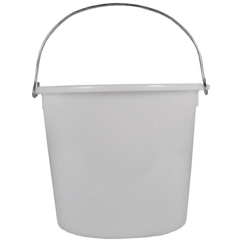 These extra storage buckets are formed of prime, high density polyethylene plastic. Reinforced bail holder won't break off when carrying heavy loads. Thick walls and extra thick bottom make this bucket strong enough to stand on. Strong Galvanized Metal Handle 0.160" Dia. Flat bottom, extra thick 0.100"